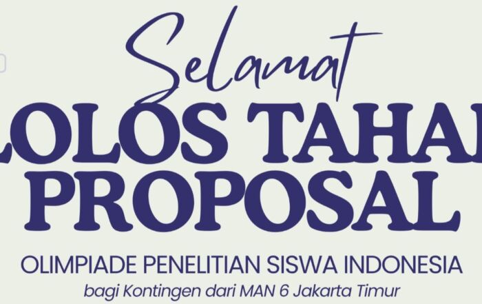 Jakarta (MAN 6 Jakarta Timur) — Prestasi kembali diraih oleh peserta didik MAN 6 Jakarta Timur dalam bidang penelitian ilmiah. Sebanyak enam tim siswa madrasah ini berhasil lolos ke tahap penelitian pada ajang Olimpiade Penelitian [...]