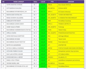 Sementara itu, bagi siswa kelas XII yang saat ini masih mempersiapkan diri untuk mengikuti jalur seleksi lainnya, seperti Seleksi Nasional Berdasarkan Tes (SNBT) maupun jalur mandiri di berbagai perguruan tinggi, diharapkan tetap menjaga semangat, fokus dalam belajar, serta terus berikhtiar dan berdoa. Perjalanan menuju perguruan tinggi impian masih terbuka luas bagi mereka yang terus berusaha dengan sungguh-sungguh.