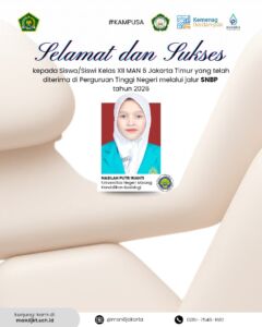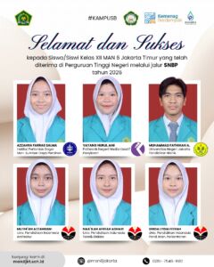 Alhamdulillahi rabbil ‘alamin, kabar membanggakan datang dari keluarga besar MAN 6 Jakarta Timur. Sebanyak 21 siswa kelas XII berhasil dinyatakan lulus Seleksi Nasional Berdasarkan Prestasi (SNBP) Tahun 2026 dan diterima di 13 Perguruan Tinggi Negeri (PTN) di berbagai wilayah Indonesia.