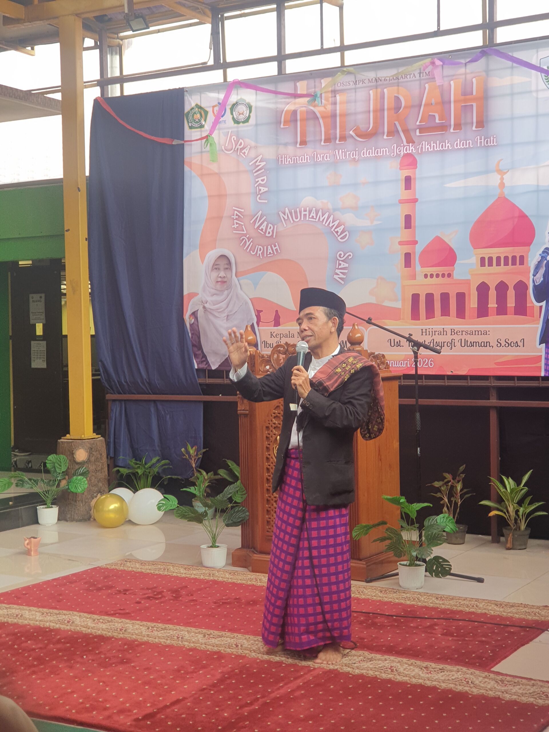 MAN 6 Jakarta menyelenggarakan peringatan Isra’ Mi’raj Nabi Muhammad SAW dengan tema “HIJRAH (Hikmah Isra’ Mi’raj dalam Jejak Akhlak dan Hati)”. Kegiatan ini menjadi momentum spiritual bagi seluruh civitas akademika MAN 6 Jakarta untuk merefleksikan makna perjalanan agung Rasulullah SAW sebagai sumber keteladanan dalam membangun akhlak dan memperkuat keimanan. Peringatan Isra’ Mi’raj tidak hanya dimaknai sebagai peristiwa historis, tetapi juga sebagai sarana menumbuhkan kesadaran akan pentingnya hijrah hati dan perilaku dalam kehidupan sehari-hari. Melalui tema yang diangkat, peserta diajak memahami bahwa hikmah Isra’ Mi’raj tercermin dalam komitmen menjaga shalat, memperbaiki akhlak, serta menanamkan nilai-nilai kejujuran, disiplin, dan tanggung jawab. Kegiatan ini [...]